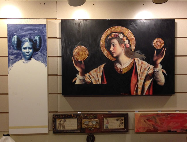 I always try and start work on several pieces because nothing in more boring than watching paint dry. So between preparing for classes/workshops and shows there are always multiple pieces to throw paint at and figure out the story that the painting is trying to reveal. This is my favorite time in the evolution of a painting.